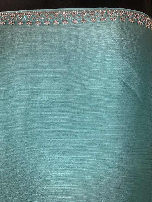 Blue Satin Saree With Stone Work And Unstitched Blouse Fabric