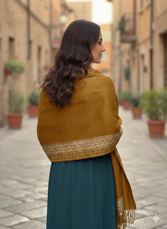 Beige & Rose Kashmiri-Style Paisley Woven Shawl