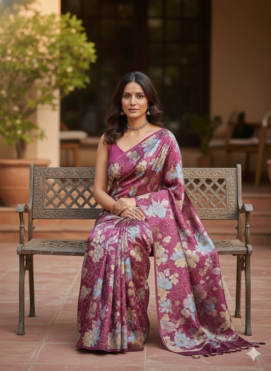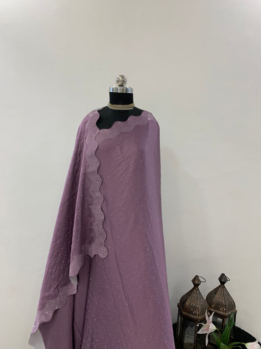 Purple Saree With Cutdana Border And Unstitched Blouse