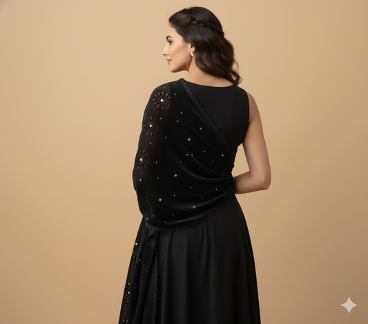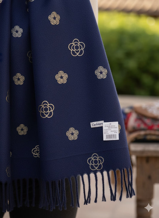 Midnight Petal Wool Scarf – Chic Warmth for Everyday Elegance