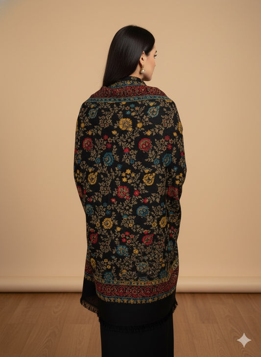 Vintage Bloom Kashmiri-Style Jacquard Shawl