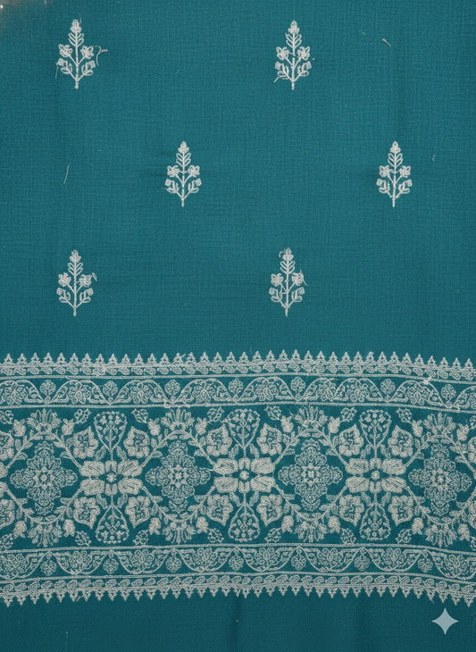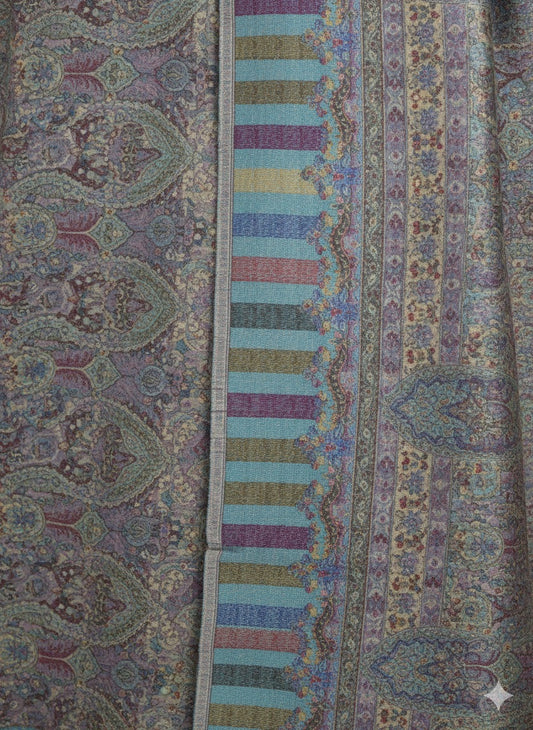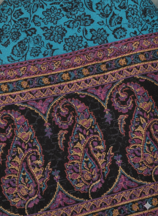 Misty Teal Multitone Kashmiri-Style Jacquard Shawl