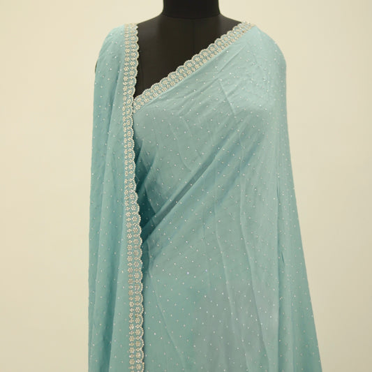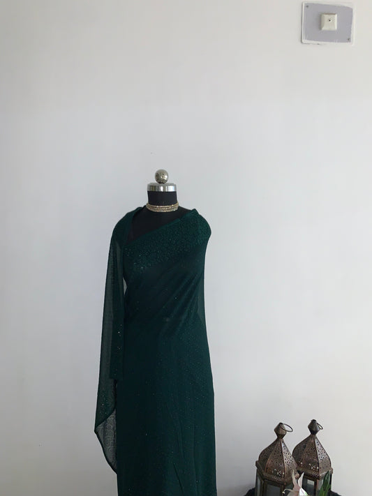Bottle green Georgette Saree With Stone Embroidery And Unstitched Blouse