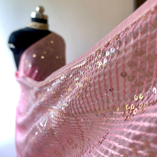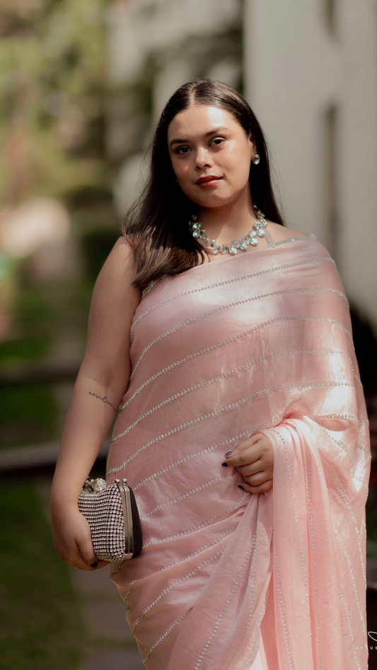Pink Glass Tissue Saree With Sequin Work Border And Unstitched Blouse Piece