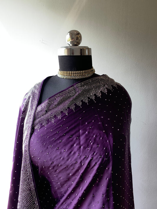 Purple Satin Saree With Stone Work And Unstitched Blouse Piece