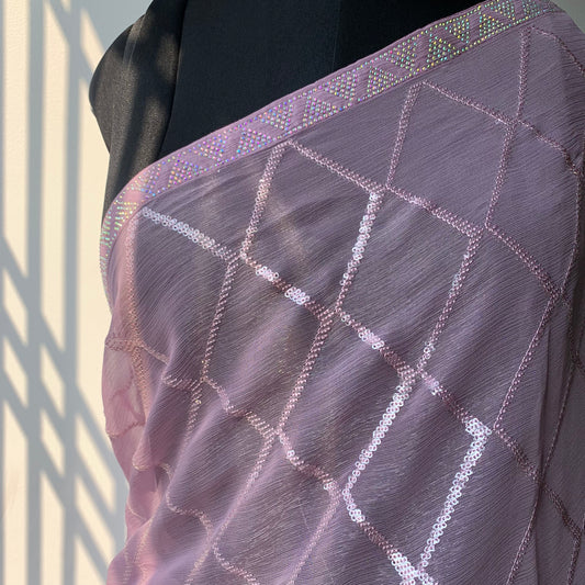 Lavender Sequins Shimmer Georgette Saree