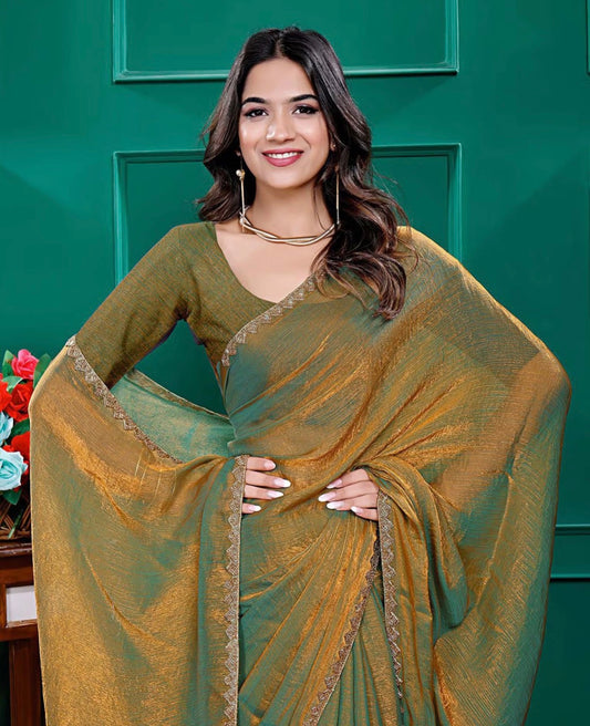 Sea Blue Tissue Saree with unstitched Blouse Piece