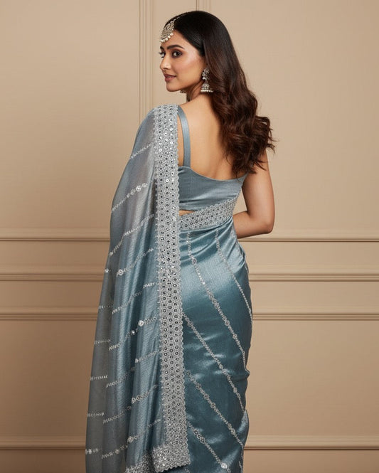 Serene Slate Blue Embellished Saree