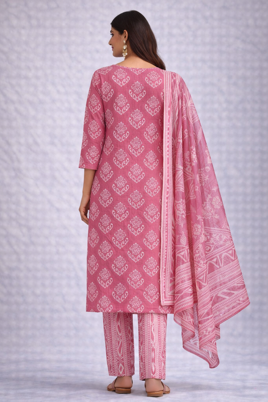 Organza Pink Pant Suit Set In Lucknowi Embroidery With Thread work and Dupatta