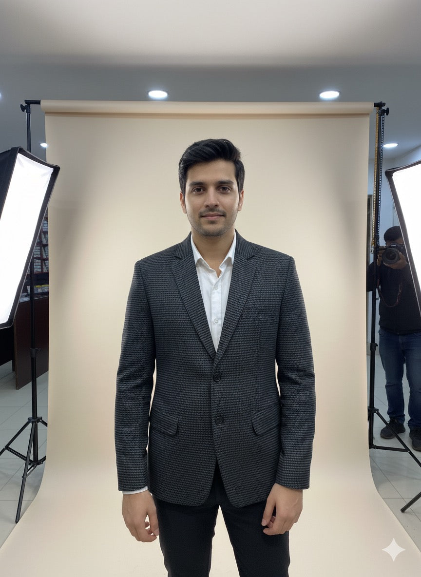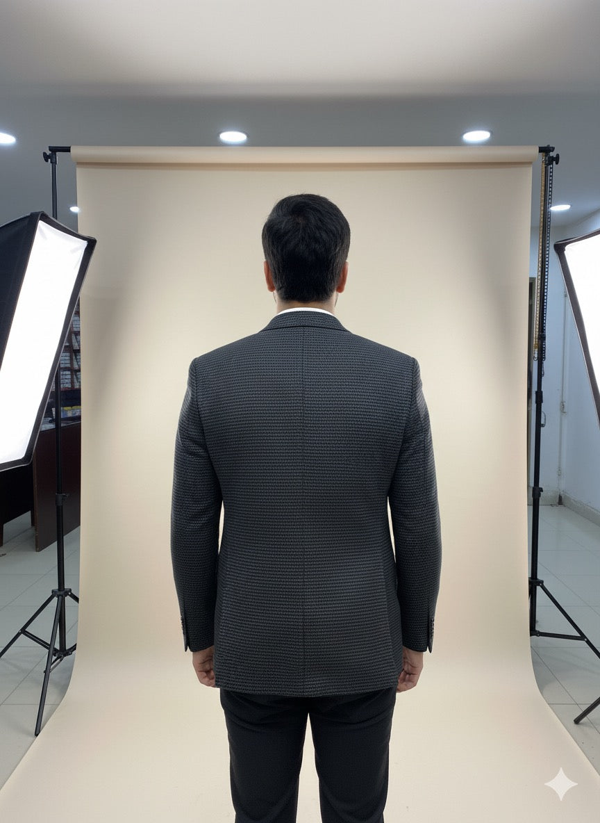 Command attention with this Charcoal Textured Blazer — a refined blend of sophistication and modern tailoring. Crafted from premium suiting fabric, it features an intricate woven texture that adds subtle depth and elegance. The structured fit, notched lapel, and two-button closure create a sharp, timeless silhouette suitable for both formal and semi-formal occasions.