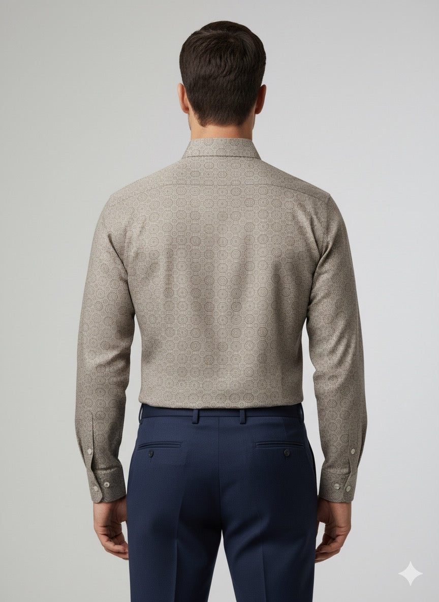 Taupe Geometric Print Formal Shirt